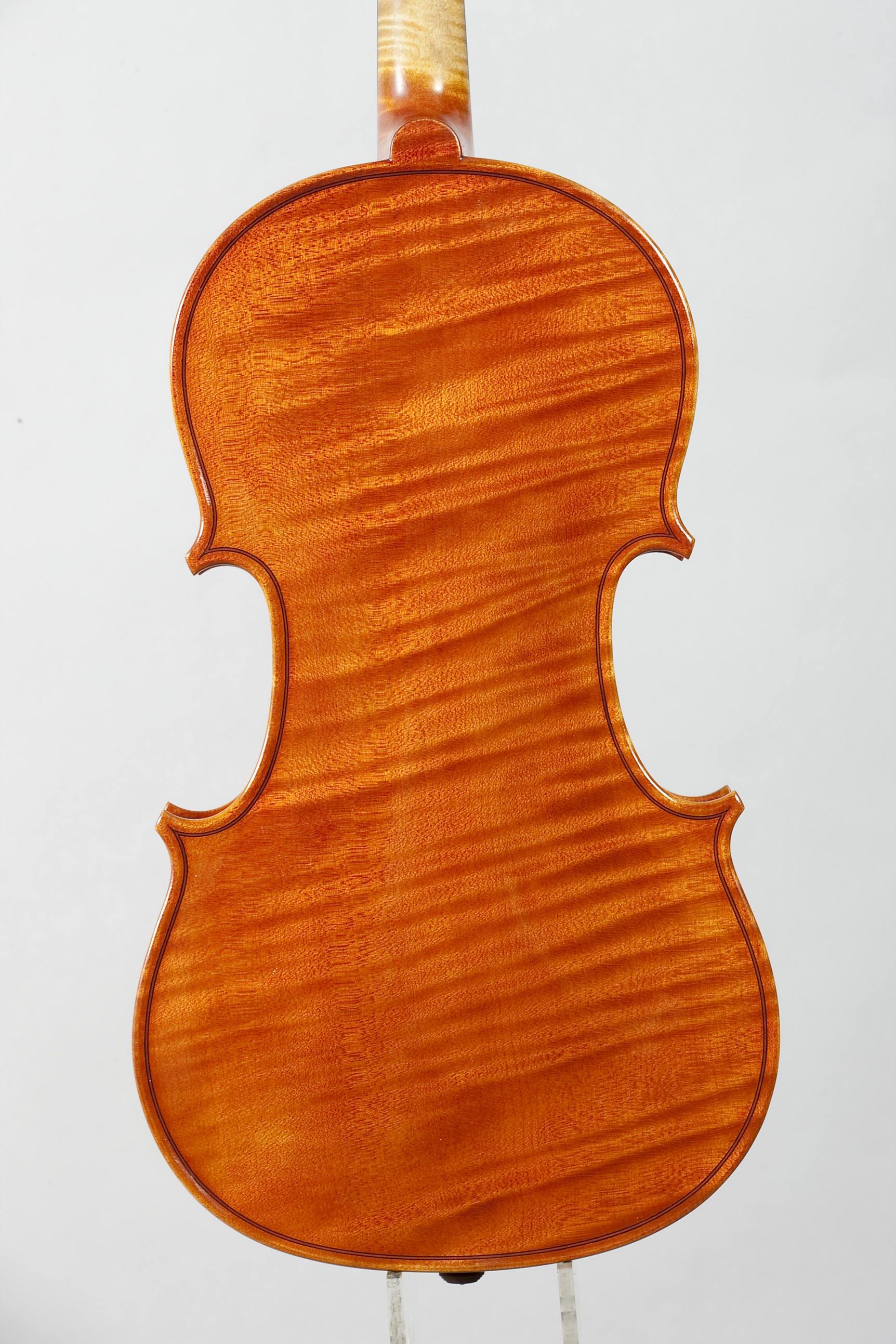 Violino realizzato da Dario Michielon nel 2008, modello A.Stradivari, il fondo, le fasce e il manico sono dello stesso acero di taglio radiale a marezzatura larga, la tavola e' in abete italiano della Val di Fiemme.