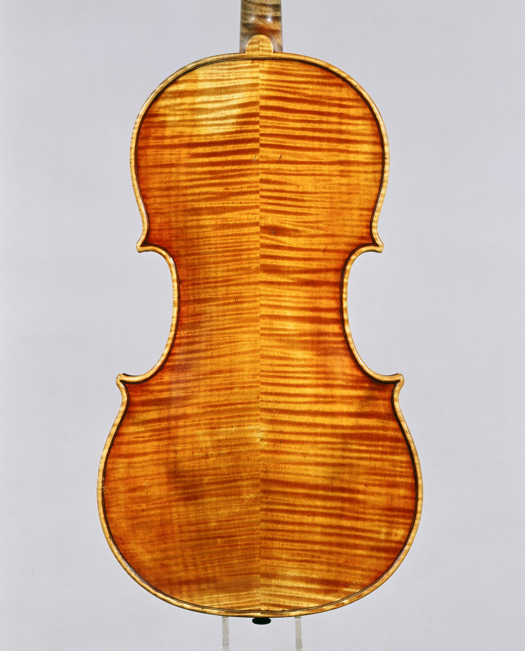 La mia ricerca in questi anni, finalizzata alla realizzazione di un libro monografico dedicato proprio a Marino Capicchioni, mi ha spinto a ricercare moltissimi suoi strumenti per conoscerli, osservarli e studiarli. Ho avuto modo di scoprire, oltre uno straordinario talento, una figura umana e professionale di grandissimo spessore. Un liutaio autodidatta dal talento straordinario, attento, scrupoloso e allo stesso tempo fecondo, che seppe farsi apprezzare, non solo post-mortem, dai più grandi musicisti italiani ed esteri, alcuni dei quali sono tuttora custodi gelosi dei suoi capolavori. Accardo concludeva allora la sua intervista affermando che Capicchioni << costruì non solo magnifici violini ma anche splendide viole >>. In effetti Accardo ha potuto sperimentare da vicino durante la sua carriera la straordinaria riuscita delle viole Capicchioni. La viola “Capicchioni” di Wim Janssen è sicuramente tra le viole più belle dell’“epoca d’oro” del Maestro sammarinese. Essa ha un modello di derivazione stradivariana di notevole grandezza (428 mm) che si distingue per l’eleganza delle linee e delle proporzioni. I bordi sono assai morbidi e arrotondati, come le punte di media lunghezza con spigoli assai sfumati che conferiscono all’insieme un aspetto di strumento ”vissuto”. I materiali sono ottimi come al solito: l’acero del fondo giuntato a “spina di pesce” ha una marezzatura di media larghezza e profonda leggermente inclinata verso il basso, il cui effetto è ripreso dalle fasce e dal manico; la tavola armonica ha delle venature molto regolari ben marcate che si allargano leggermente verso il bordo esterno Raffinatissimo ed esemplare, come al solito, è l'intaglio del riccio, scolpito con cura e maestria, dove la capacità tecnica è unita ad un notevole gusto per la simmetria e le proporzioni. La vernice è di colore rosso –bruno giallo-oro leggermente sfumata, stesa sopra la caratteristica preparazione del legno del maestro, grazie alla quale la marezzatura degli aceri viene ancor più esaltata quasi a farla apparire in rilievo. Lo stesso effetto avviene per la venatura della tavola armonica.